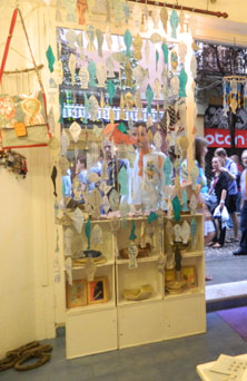 Com cada any la nostra aportació es diferent. Altres anys hem engalanat la façana i el aparador amb el mateix motiu. Però aquest any hem preferit fer una cortina a base de peixos, ja que es una figura fresca i estiuenca.