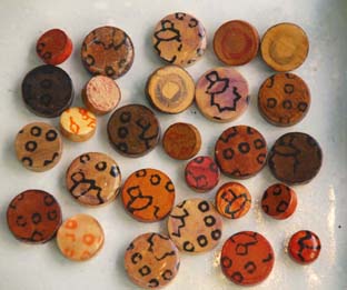 Tallados a trozos pueden tener un cierre metálico. Se pueden decorar con incisiones. También se pueden encontrar más bien en trabajos muy elaborados.