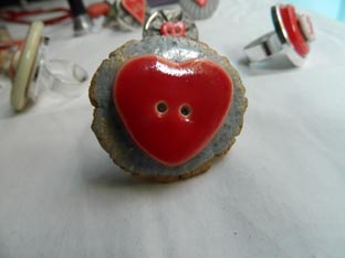Després de molt de temps de tenir el blog abandonat, avui dia 23 d’abril de 2015, reprenc la tasca de escriure i us presento aquests anells amb botons de ceràmica que he fet per la diada de Sant Jordi.